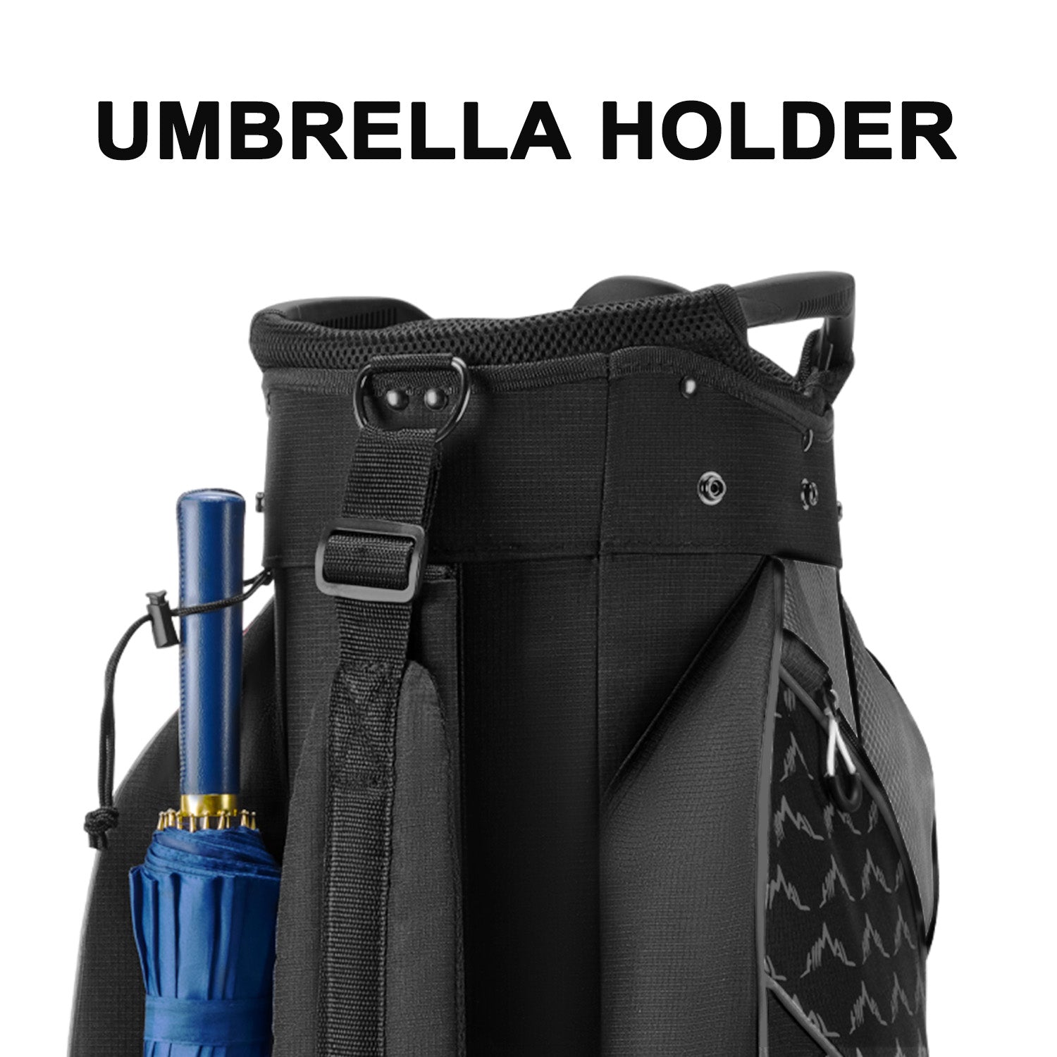 Convenient Features:Includes adjustable drawstring to securely hold an umbrella and hooks for gloves and towels, adding to the bag's overall functionality. This makes it an excellent choice among golf cart bags for men who need convenience and organization on the course